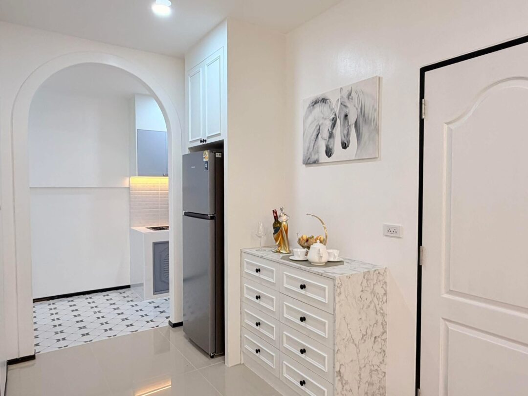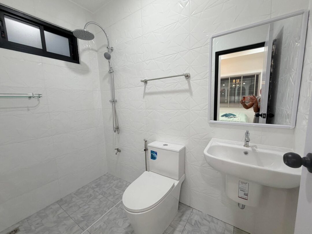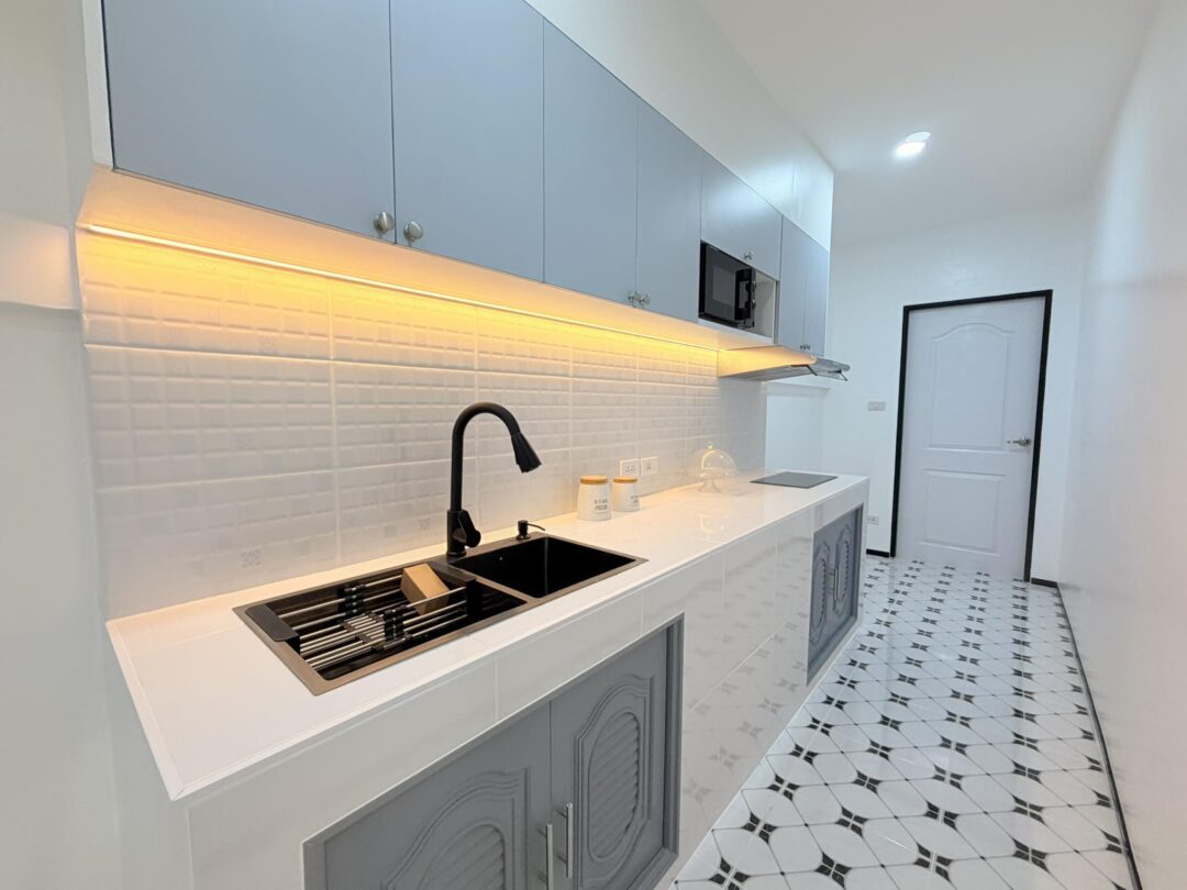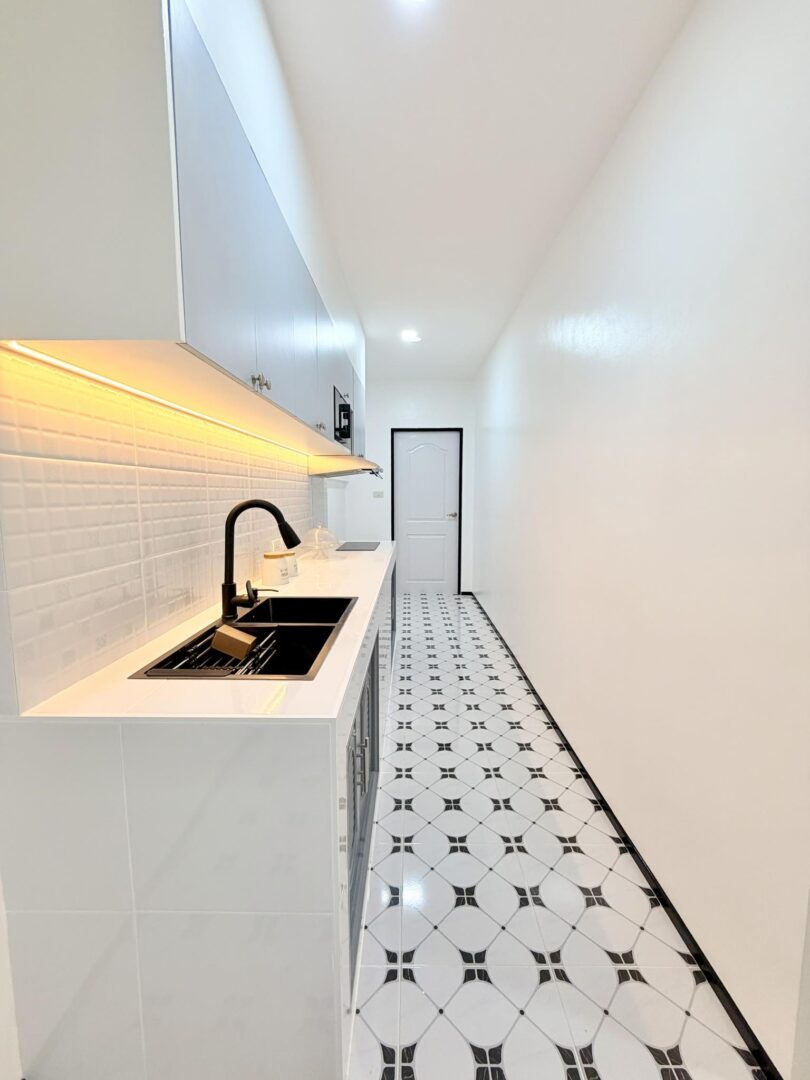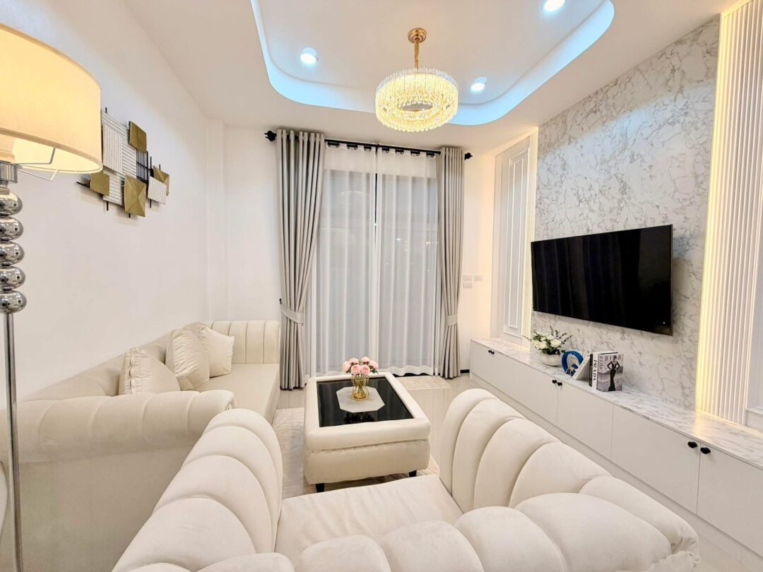 Set on a 60 sq.wah plot, the property features 3 bedrooms and 2 bathrooms, along with ample parking space for up to 3 cars inside the house and an additional 3 cars in front. The entire home is fully built-in, ensuring a cohesive and stylish interior with plenty of storage and practical living areas.