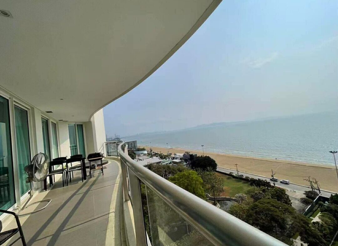Reflection Jomtien Beach Pattaya is a luxury beachfront condo located in Building A on the 10th floor, offering a spacious 217 square meters of living area. The unit features 3 bedrooms, 4 ensuite bathrooms, and a nanny’s room, making it ideal for comfortable family living. It includes both Thai and European kitchens, along with two large balconies—one facing the ocean with stunning sea views and the other offering peaceful mountain views. The property is available for rent at 110,000 THB per month or for sale at 38 million THB under foreign quota, with transfer fees shared 50/50. This pet-friendly unit allows pets with an additional fee of 3,000 THB per month, making it a perfect choice for luxurious seaside living or investment.